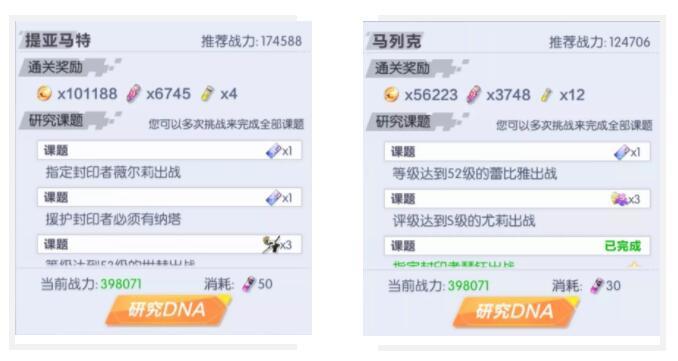 由于每个次元兽的情况不同,研究的时候也会有不同的课题,需要指挥官使用指定的封印者或实现特殊的战斗操作才能完成课题获得奖励呢~