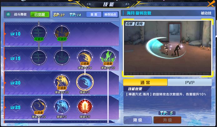 战斗舞者的技能海月与比翼是为数不多的Y轴进攻范围技能,并且没有施法延迟。而且技能命中敌人之后会僵直对手,结束后会击飞或者击倒敌人,是非常不错的起手技能。可以说这两个技能,很大程度上弥补了自身攻击距离较短的短板,PK时建议把海月点出强化。