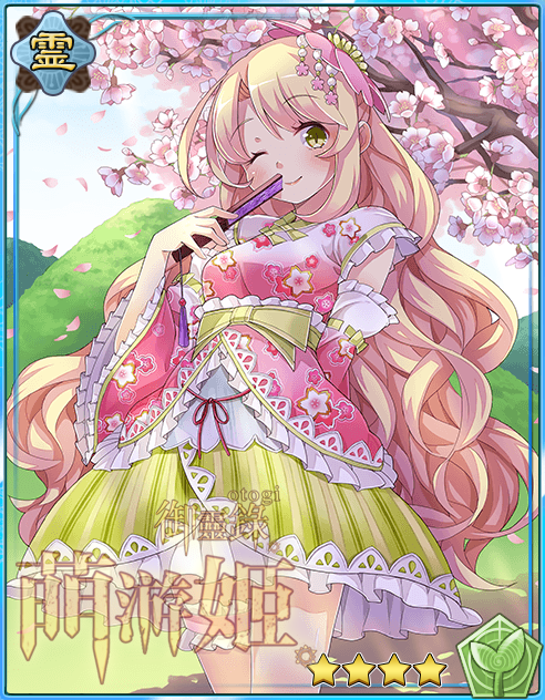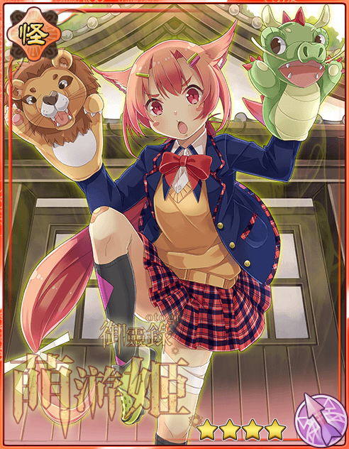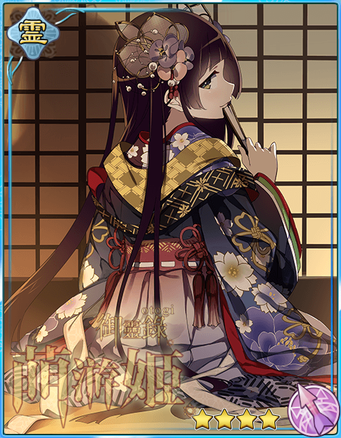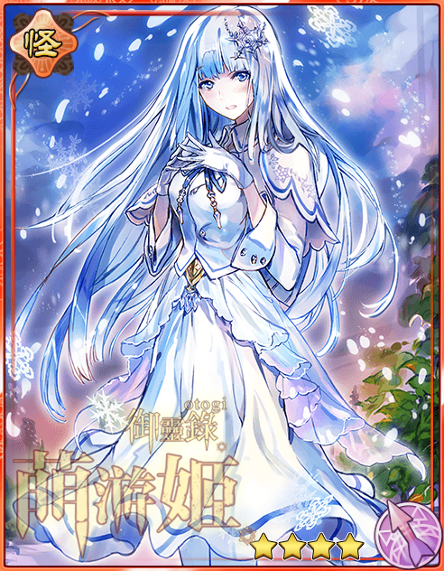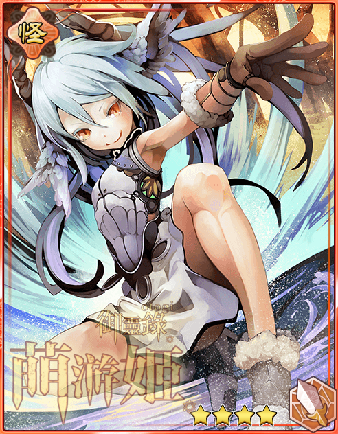 简评:又是一张卡面很好舔的卡,为数不多的治疗之一,而且面板数值是治疗里最高的一个。技能虽然回复量不高,但目标是己方全体而且附带一定时间内所受伤害下降的效果,在打一些比较特殊的关卡的时候能防止自己的式神被秒杀。属于有就练的卡。