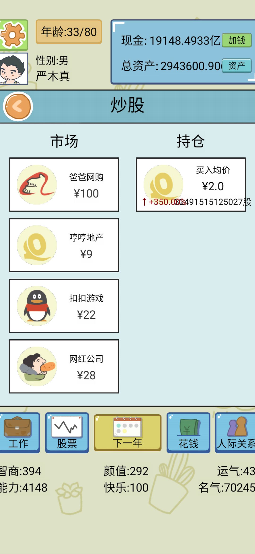 第一代正常,高考,找工作,项目投资,等股市降到最低,直接抄底,哼哼地产才是王道