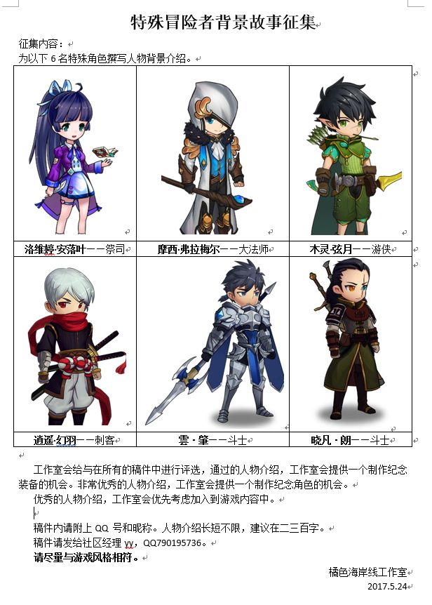 特殊冒险者背景故事征集