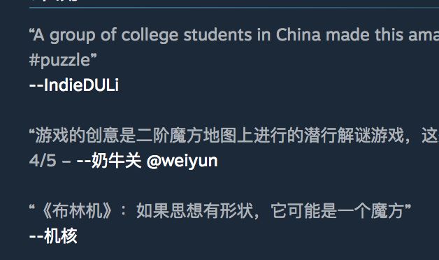 PS:想对开发者说的话——作为一个小透明,在和你们互动的过程中能感受到你们对玩家的热情,很感谢你们乐于分享开发经历,让我见识到不一样的大学生活,我也很受启发。擅自把你们的事情分享到这里让喜欢布林机的人看到,希望不要介意【滑稽