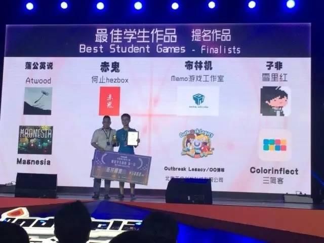 这是他们在上海参加中国独立游戏节,在一堆提名作品里拿到最佳时的照片