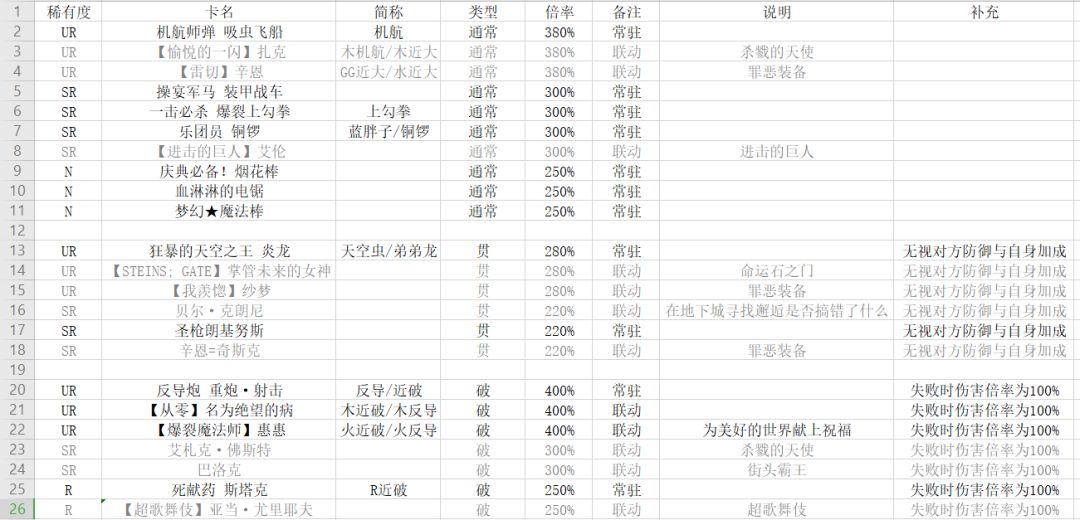 ④只标明卡牌本身的倍率,忠臣.亚当.缠等的加成均为1.2倍,具体数值楼下有大佬补充(ง˃̀ꄃ˂́)۶
