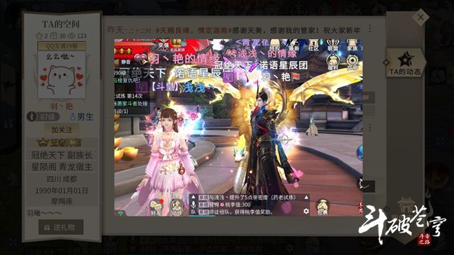 羽丶艳:我跟我的情缘浅浅丶很早就相识了,每天就是在一起过任务,没事的时候就是一起聊聊天,也没有什么特别轰轰烈烈的事情。我认为简简单单就是福,细水长流才是爱。