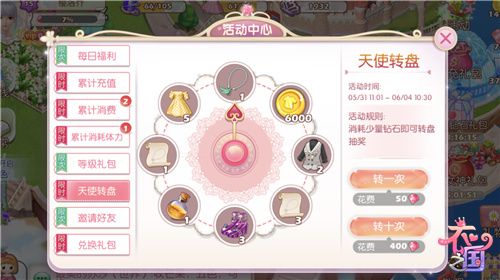 火热的夏日带来火热的激情,为回馈玩家一直以来对《衣之国》的厚爱,即日起至6月4日,天使转盘开启惊喜活动,豪礼连连欢乐不断!每天首次抽取全面免费,转十次即有机会获得高分服饰夏威夷风情、黄色染色剂、花与爱丽丝图纸、温柔骑士·衣、五色花、金币、芒果慕斯等超丰厚福利,绝对是非常非常罕见的好东东,少女们一定不要错过!