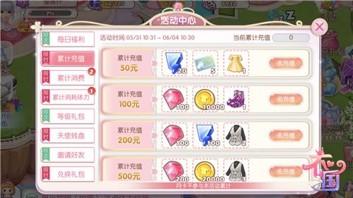 即日起至6月4日活动期间,全区服少女们只要累计充值达到对应档位,即可领取额外好礼,求购券、体力、钻石、金币、芒果慕斯、温柔骑士·衣、成衣仓库上限等奖励,等你打包带走哦!当亭亭玉立的美少女一秒换装帅气骑士,也可以换装幼稚园服饰扮嫩,别提多有意思了!