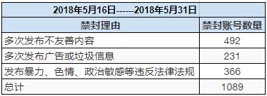 总共有1089名用户被禁封(其中202名是通过用户举报核实后禁封):