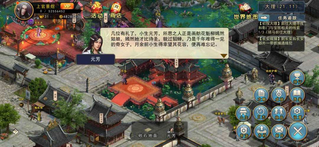 回到画舫,嫣然欣然同意与元芳共游洱海,于是去找元芳,元芳听到影门之后大惊,原来元家也被影门登门拜访,告别元芳时,元芳神神秘秘将一部金瓶梅送(增加书技50点)与自己,此奇书正是自己求之不得之物,当然欣然收下。