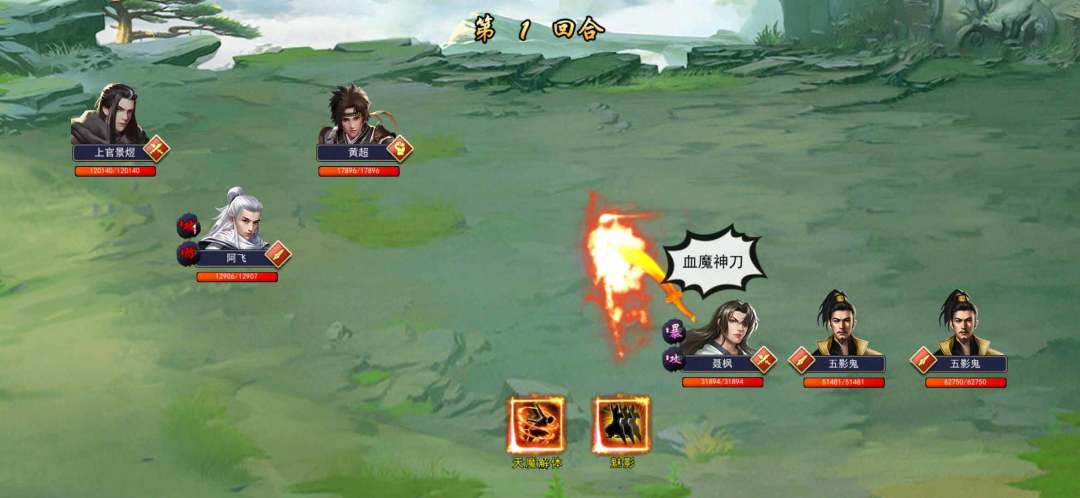 看来自己与鸠摩智的一战不可避免。只见电光火石之间鸠摩智摆开阵势。看来他也是不敢托大。该与鸠摩智做个了断了,注意左上方鸠摩智阵型闪避率极高。
