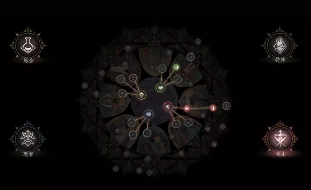 在地图上稀少的祭坛处,是角色强化属性、点出技能树,制作道具和装备的存档点。除此以外,每张图角落里还隐藏着青蛙“赫吉”作为额外奖励内容。