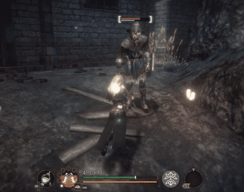 在通过开头的教学型怪物熟悉完基本战斗方式后,你可以轻松熟悉游戏的全部战斗方式:消耗精力条的格挡、闪避,轻击和重击,加上药水和道具栏。从最简单的小怪到多Part的Boss,都要靠这些行为来解决。