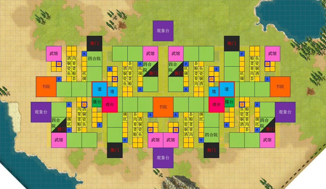 其实如果不是强迫症,必须对称,必须差不多在地图中间,必须能修城墙。。。。还可以再精简的,以后再说吧