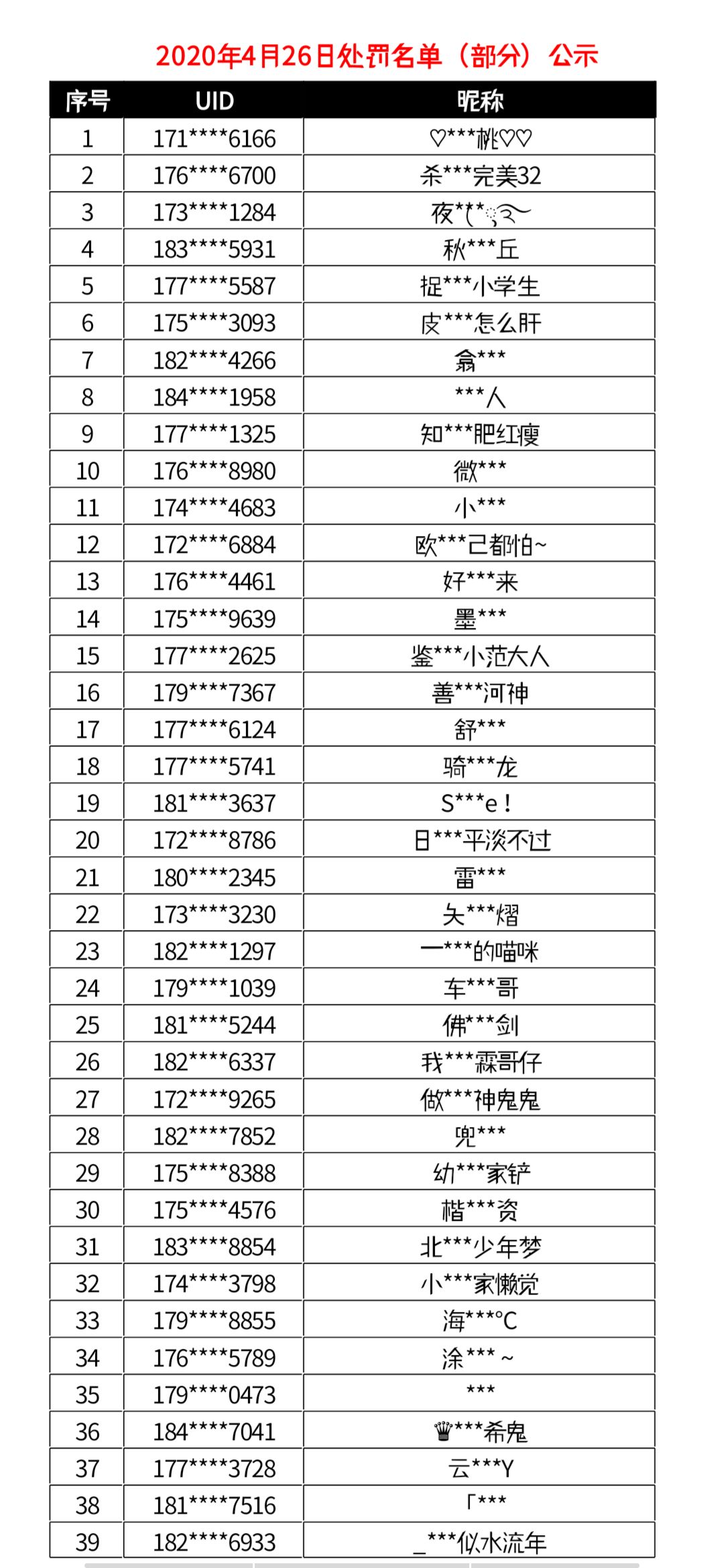 4月26日非法游戏行为处罚名单公示