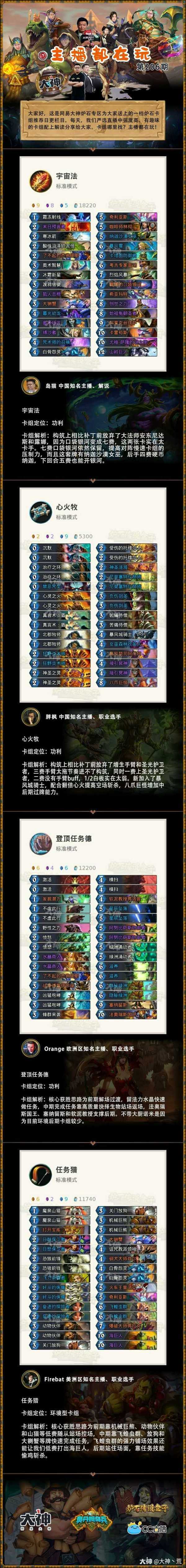 【主播都在玩】卡组推荐第206期来了,本期亮点:岛猫负重前行银河法,胖枫放弃手臂心火牧