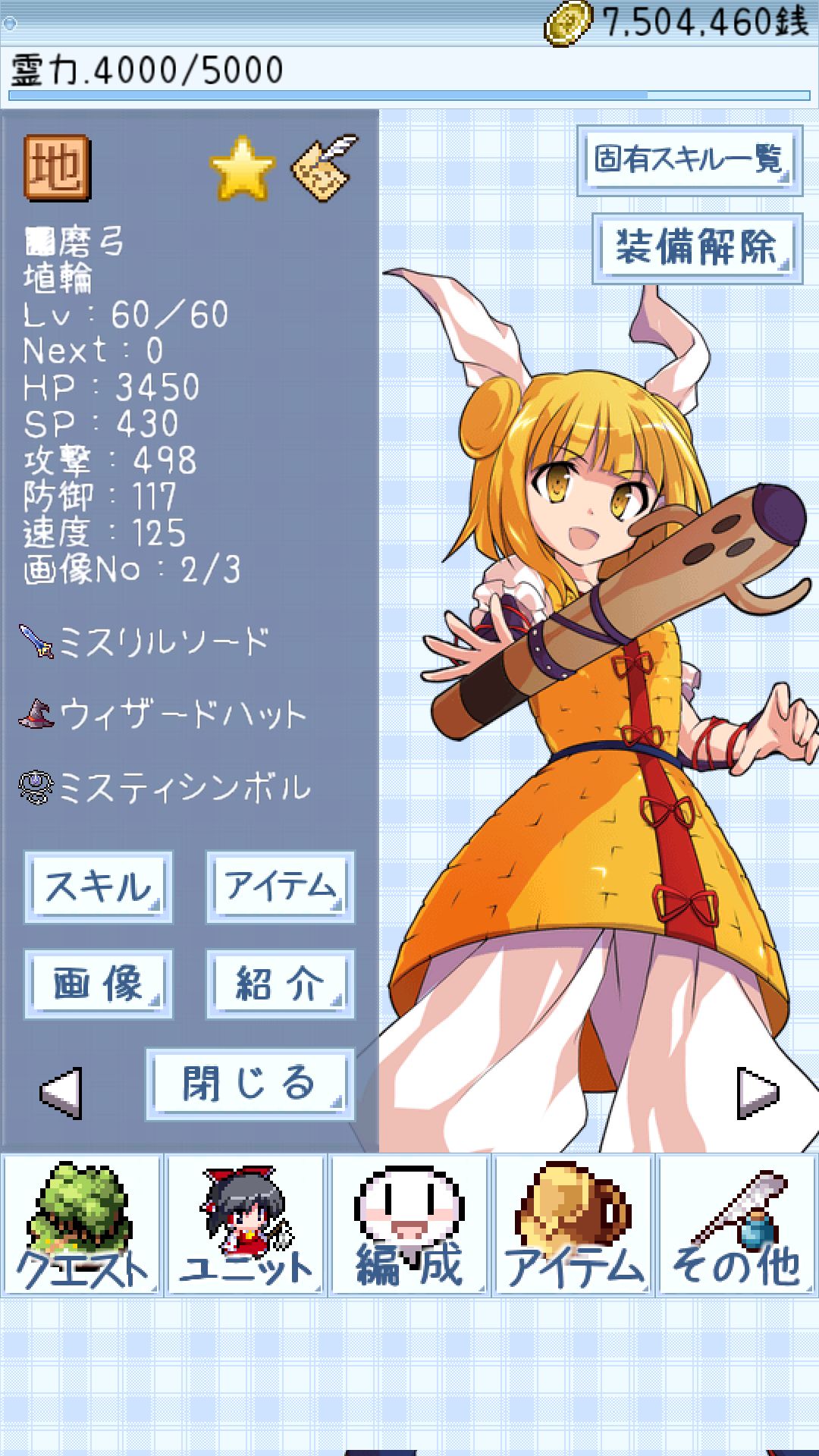 (六十级,装备就是第一张图的就是装备,攻击力到了498)总结:作为地系输出,杖刀偶磨弓很不错,自身自带两个攻击强化,而且因为被动,白值也很可观。如果缺纯地系输出,可以练一下。当然,纯地系这也是个问题。在我打强敌本时,磨弓配合袿姬,只要让磨弓A出来了,对方不是残废就是直接暴毙。(顺带一提,我打副本一直都是最高难度,没变过)