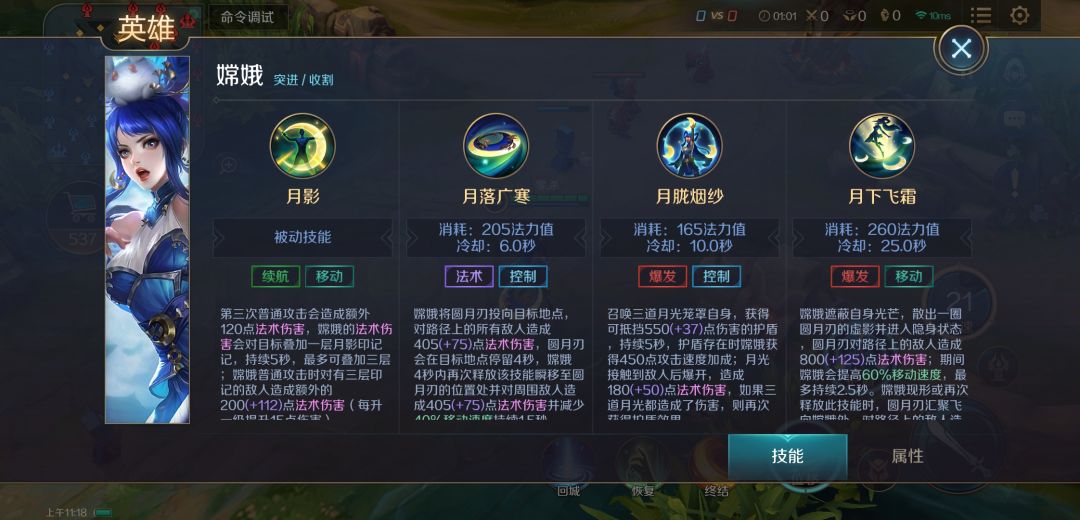 2.前期的嫦娥主要打法是收割,面对满血敌人往往没有能力单杀。建议跟团集火输出敌方英雄,或选择血量不满/状态不佳的敌人发起攻击。