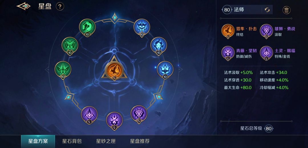 星盘我推荐这套法师穿透常规星盘,本套星盘的最大亮点是法术输出能力和爆发能力的增强,同时兼顾 吸血、移速、冷却、减伤,全面提升嫦娥的作战能力!