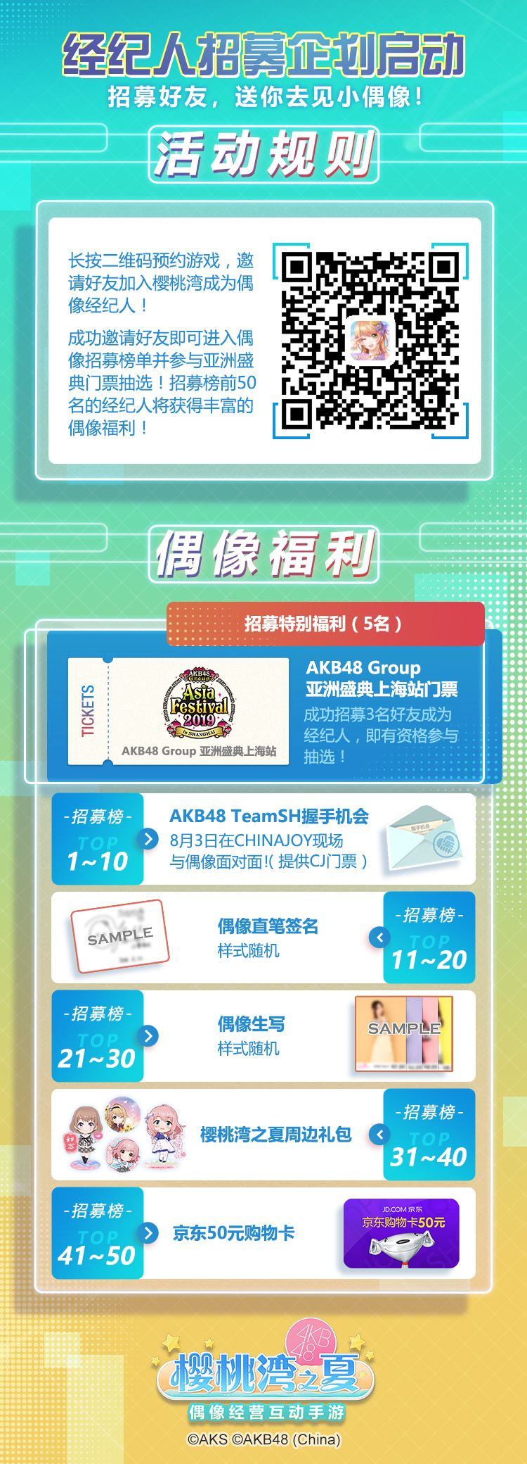 招募未预约过游戏的好友加入《AKB48樱桃湾之夏》,六种豪华福利等你来拿!