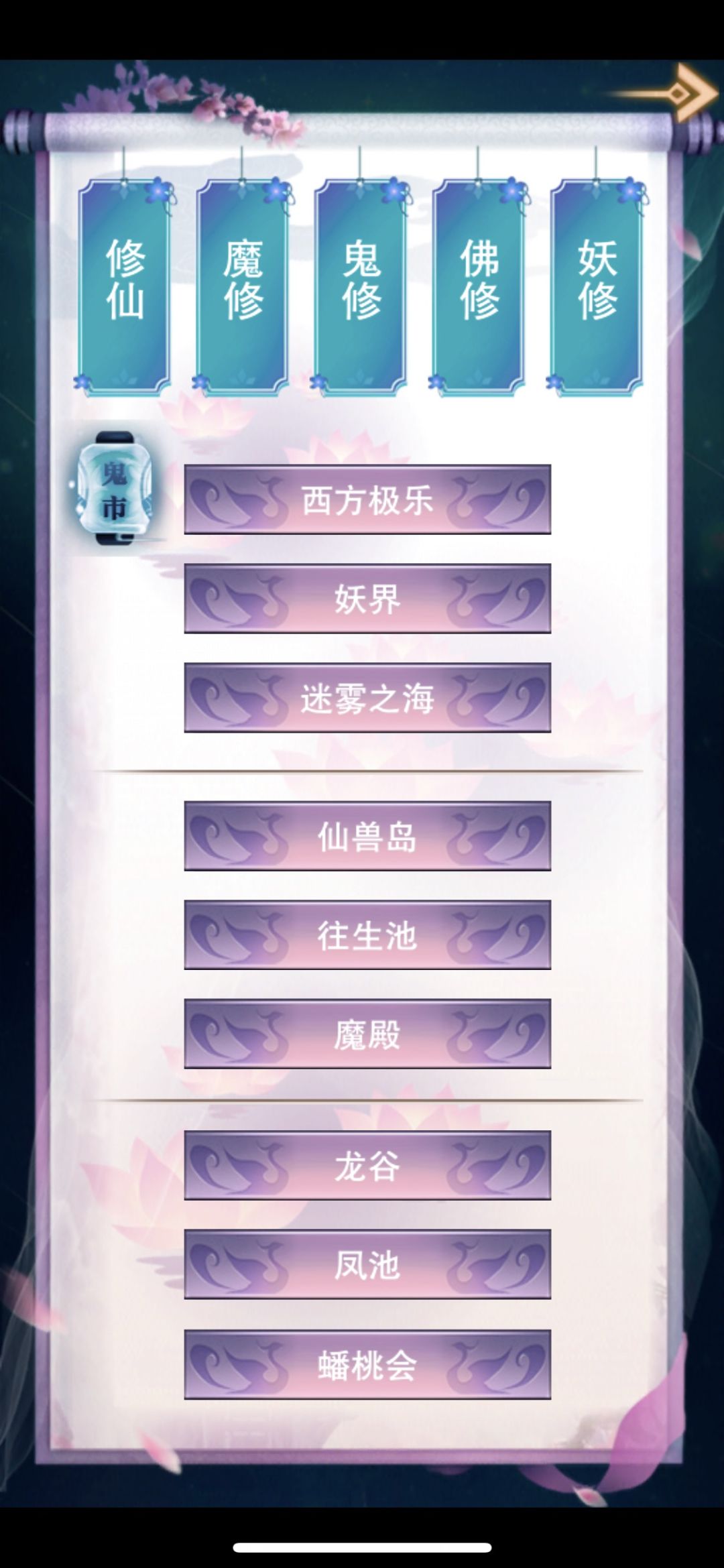 (如图,该界面入口在三十三天右侧的“仙”字)