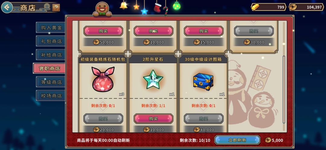 1.补给商店体力必买2次以上(用黄金),精力只要据点够用即可(肝帝氪帝也可买),另外银币商店有5次小精力小体力药(5w银币到手我建议全买)。10张扫荡符1w,一天可买两次,物美价廉