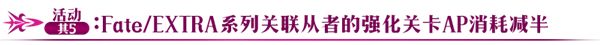 Fate/EXTRA系列一部分关联从者的幕间物语AP消耗限时减半。