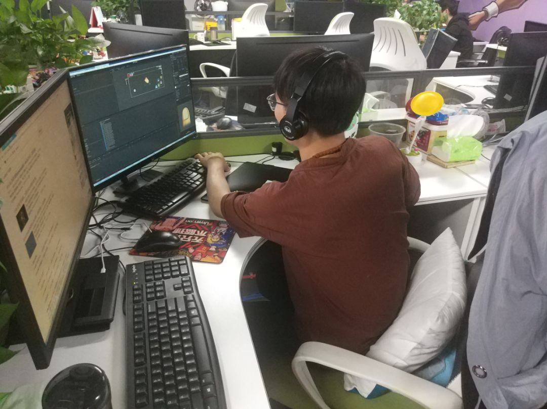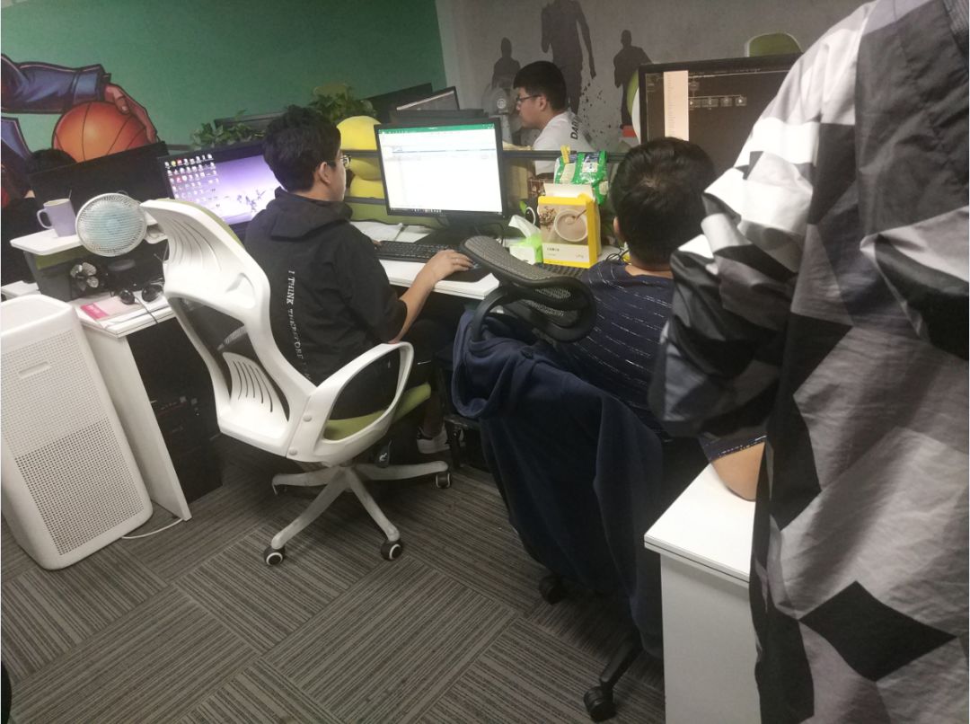 从照片中可以看到研发小哥哥们不是在自己的工位上进行加班,就是多人围绕在一起讨论各自的想法!真的是为了游戏,为了梦想在奋斗啊!看着我都有点感动了!