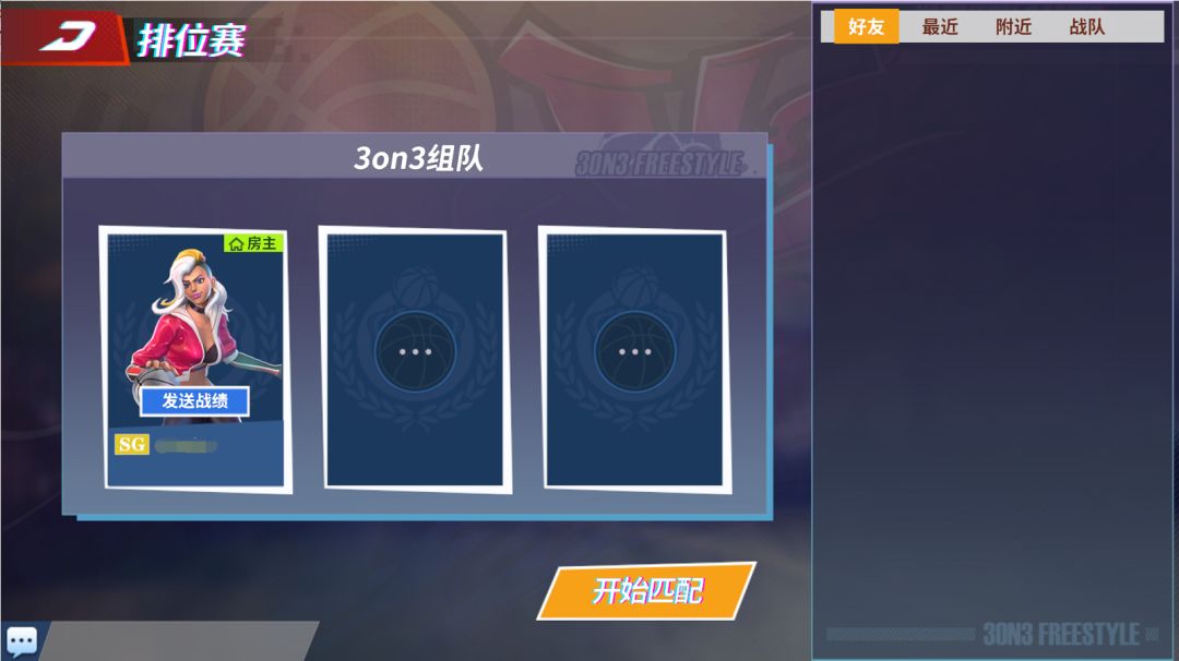 第三张,也是今天的最后一张,匹配界面,从匹配界面我们可以看到的是可以单人匹配,也可以邀请好友一起匹配,享受3V3带来的快乐!