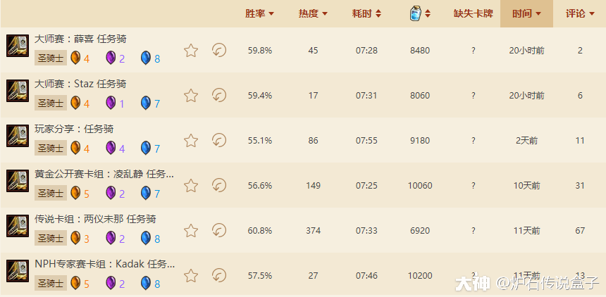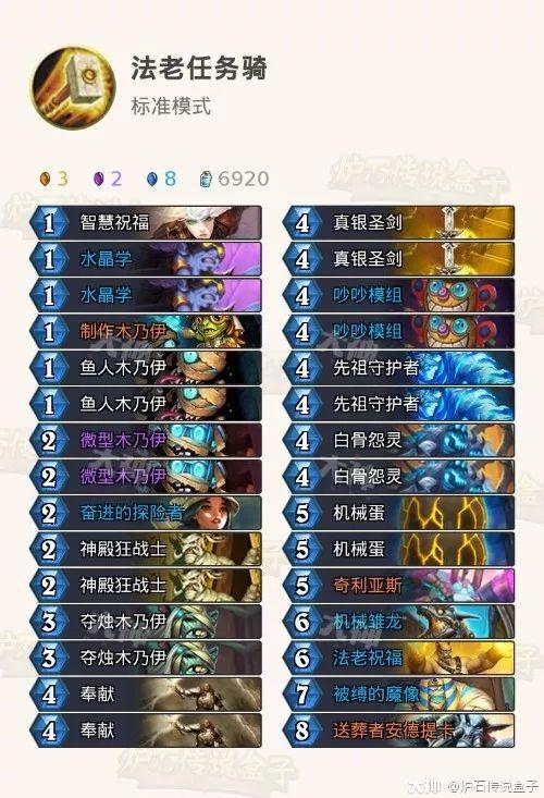 今天是开学报道的第二天,学生党们也要慢慢开始军训,上学啦。Box君祝大家新的学年有更好的成绩,当然有空也要搓几把炉石哦!在新版本中骑士拿到了胜率最高的荣誉,那么除了鱼人体系,另外一套任务体系也是非常厉害,同样是T1的级别!