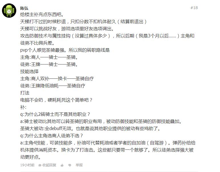 PS:有朋友指出主角4技能栏适合探索,而且事实上,飞行员到高级战士,能用的主动技能嘛。。一般都是AAA确实有点枯燥。并且这位朋友指出圣骑士是非常给力的职业,尤其是探索型圣骑士和商人型的,大家有兴趣去尝试。我这个号发掘差不多了,也会试试其他选择。