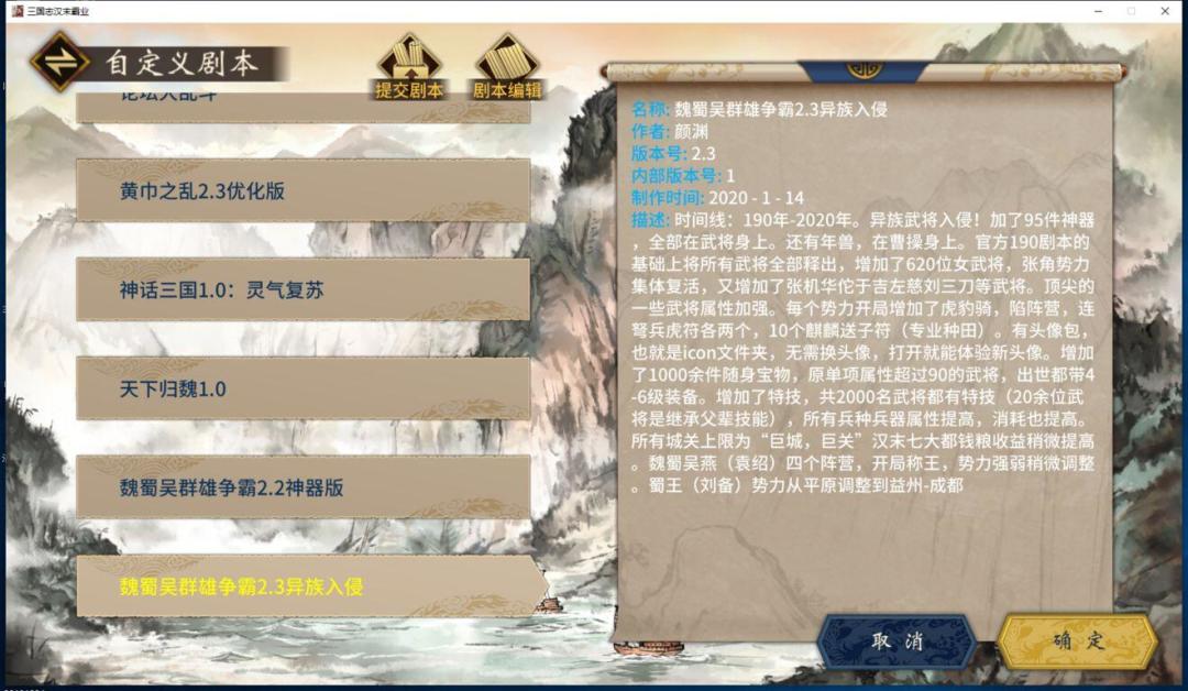 魏蜀吴2.3更新了,主要更新了异族势力,年兽。还有加了620个女武将,全剧本共2000名武将都有特技