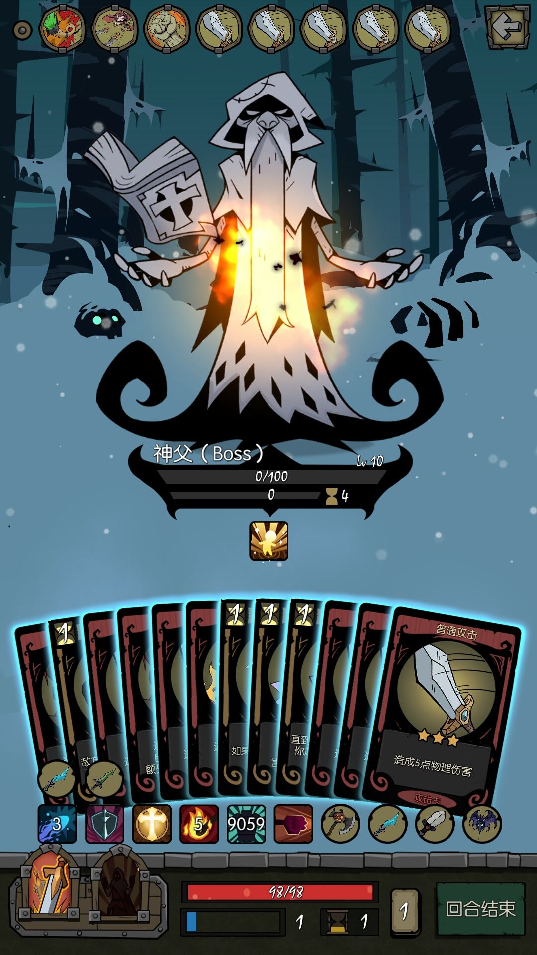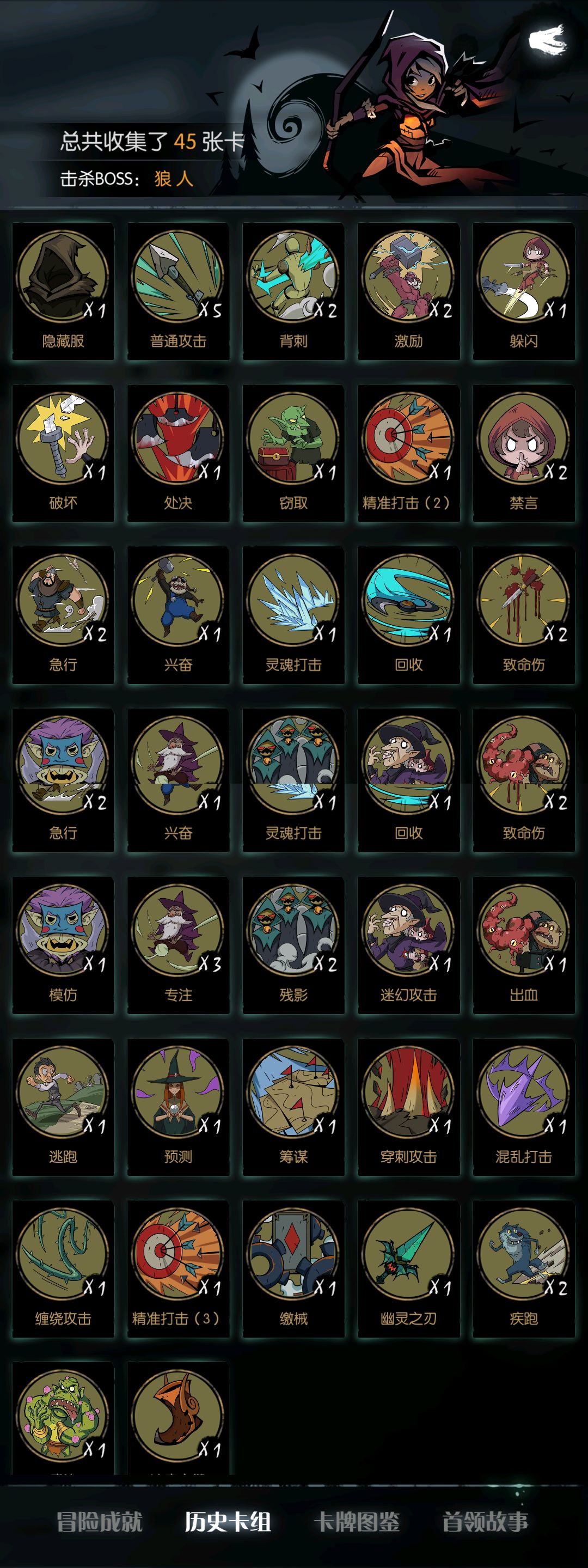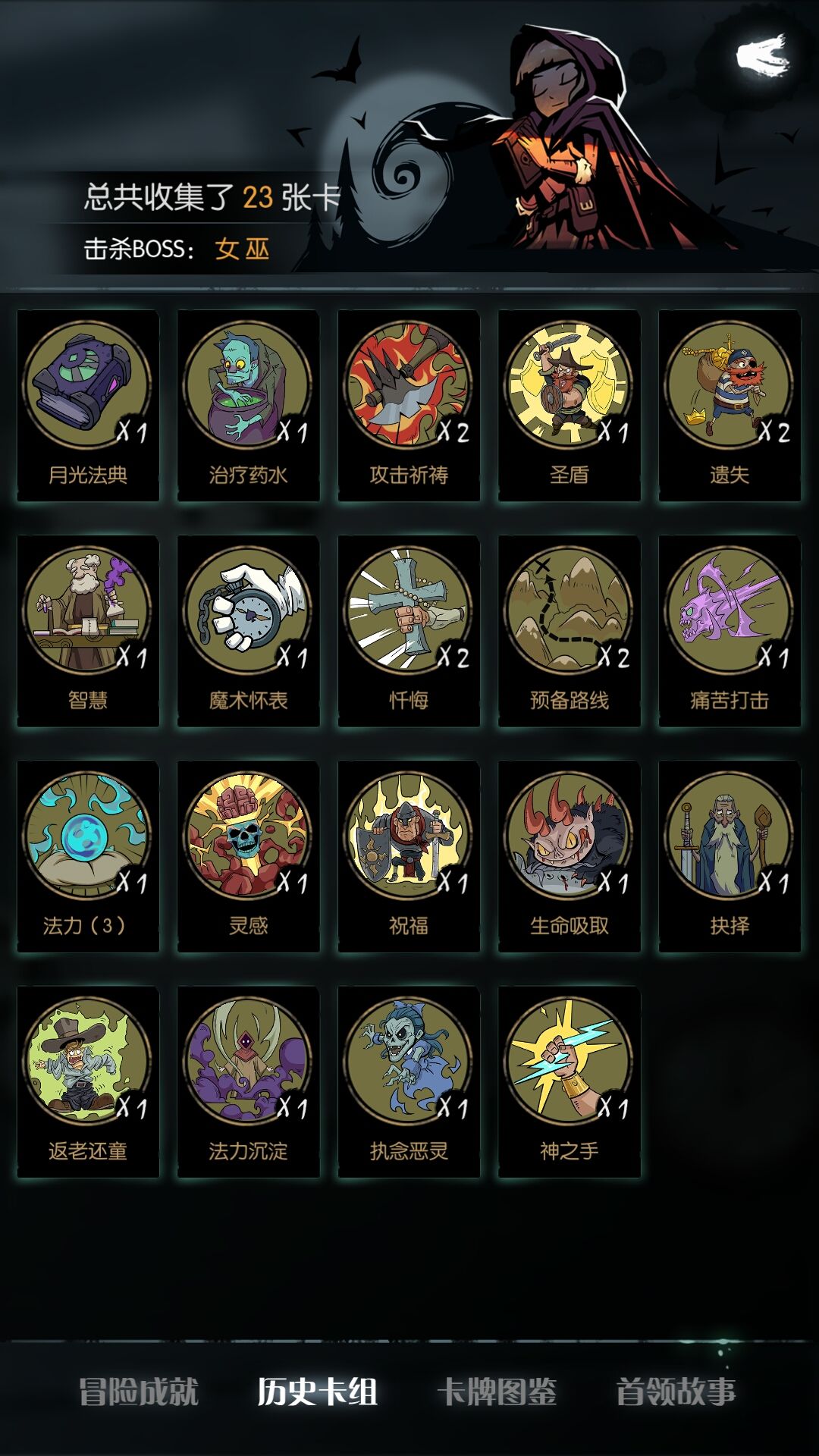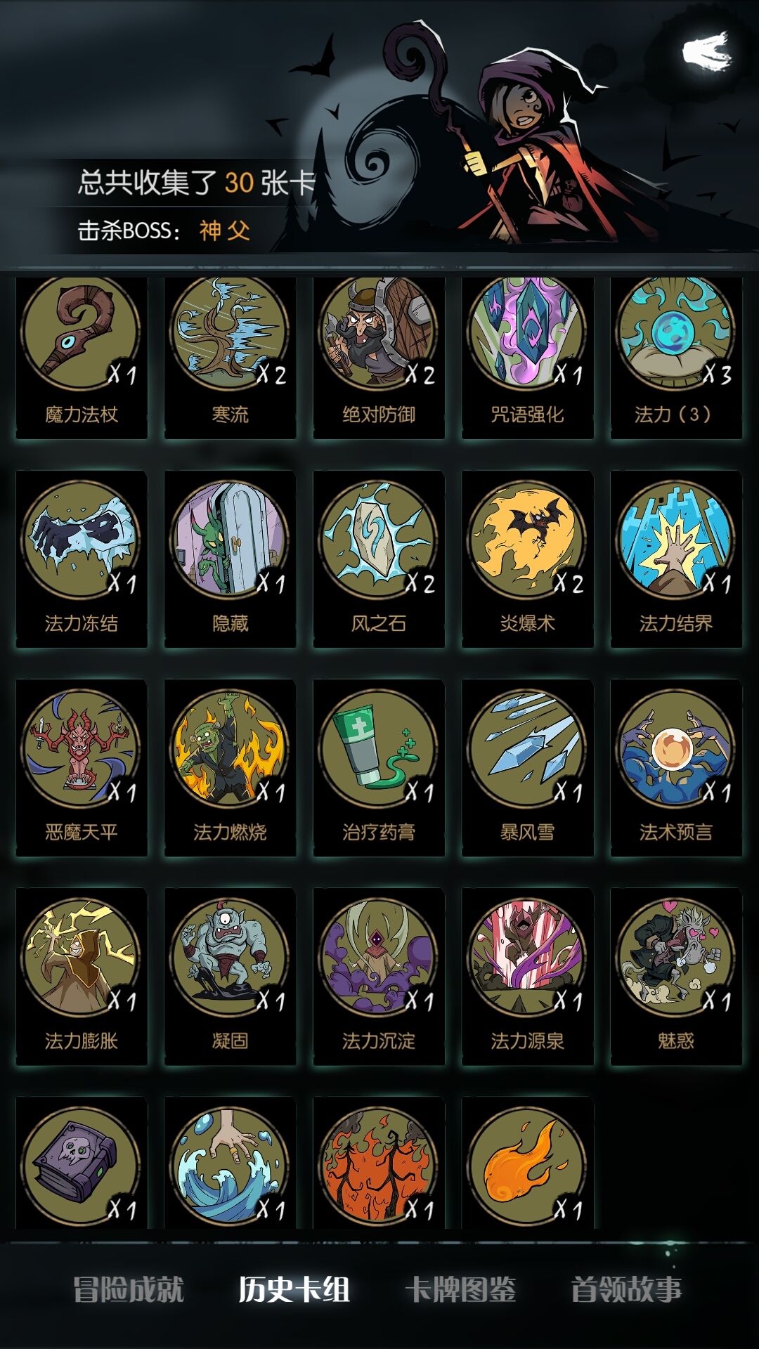这个套卡组第一章图收了个千变万化,基本就是硬干外加刷牌升级,前期基本用不上绷带和生命泉水,全靠升级回血,boos就是干,扣了一半血不到过了。。。