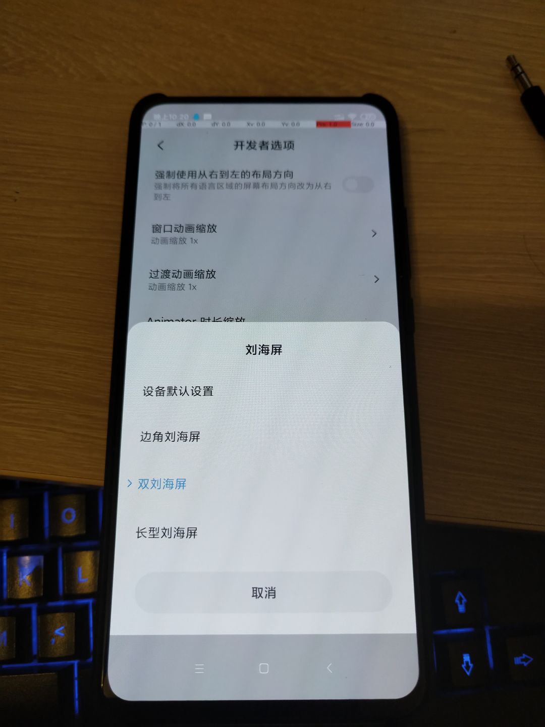 使用的刘海屏设置是双刘海屏,就是这个宽度的屏幕位置会产生延迟现象,我录了几个视频就非常直观了