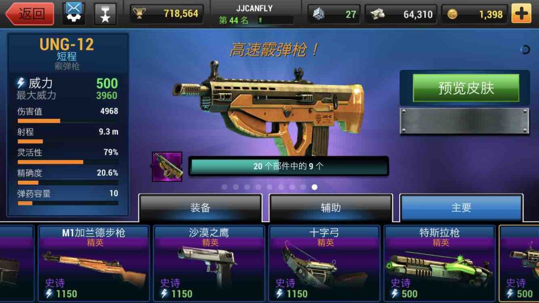 先把之前的蓝色绿色武器全部打出来!