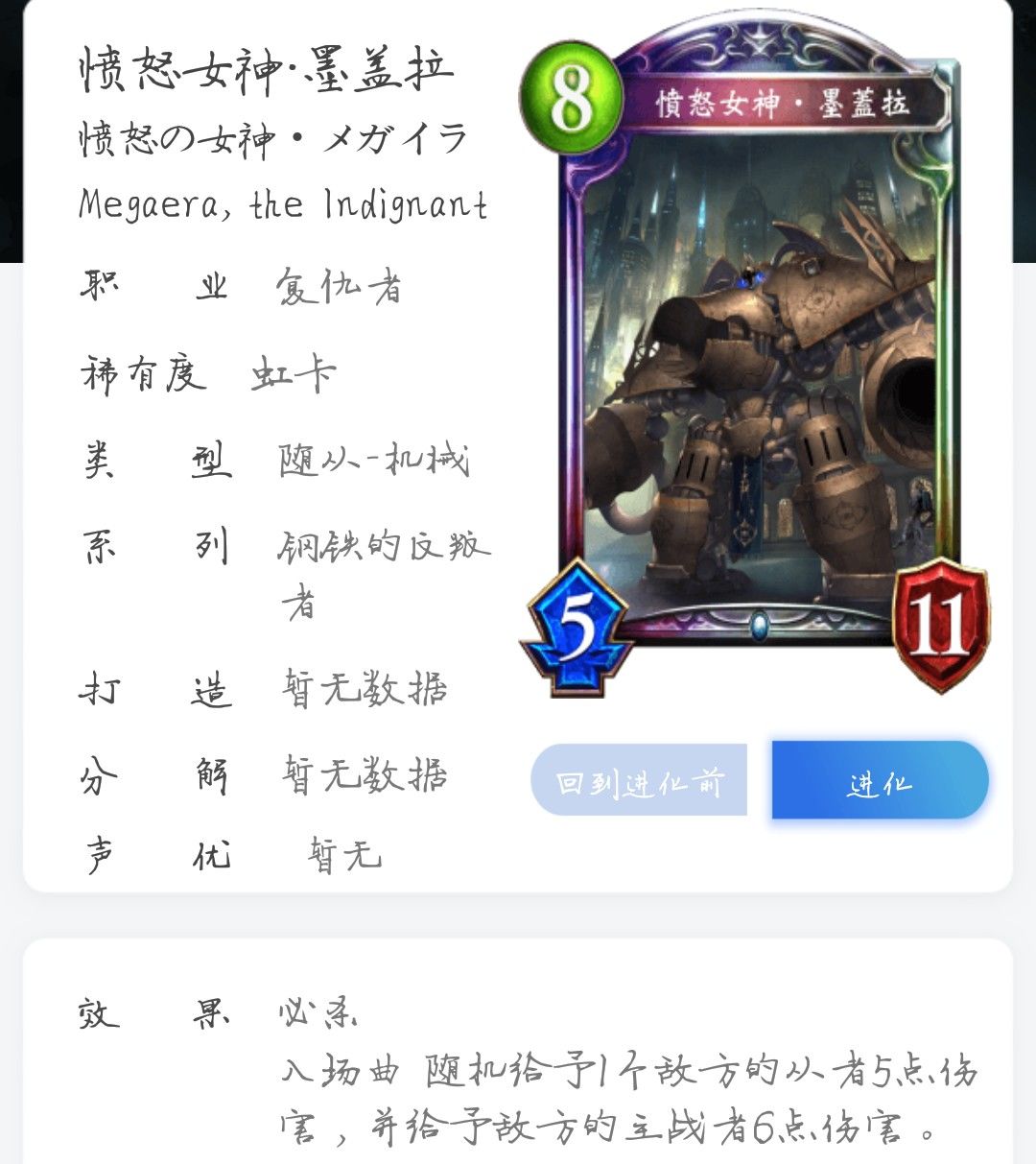 作为一张6费卡来说,z神不亏身材,但是不进化就是个66白板,那么其奖励就是那些衍生卡了。让我们一起看看这些卡。