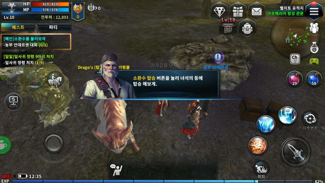 At LVL 10 the quest is given, is called mount and got him to sit down, but after the call where nothing presses, nothing happens.. in the middle of the plate and everything