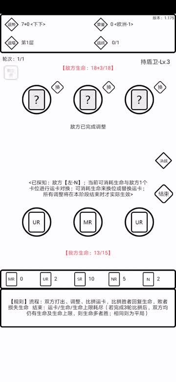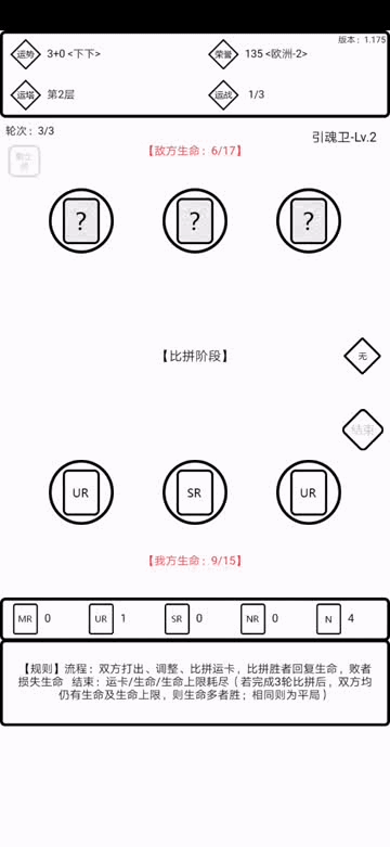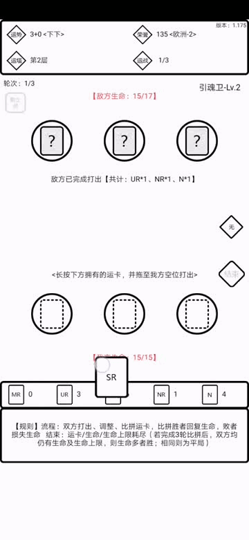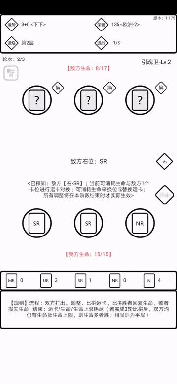 看下图 生命这个东西就不用多说了归零即失败。我们直接看我方生命下方的是咱拥有的运卡,上方的是卡位,咱们从左往右称为左位、中位、右位。