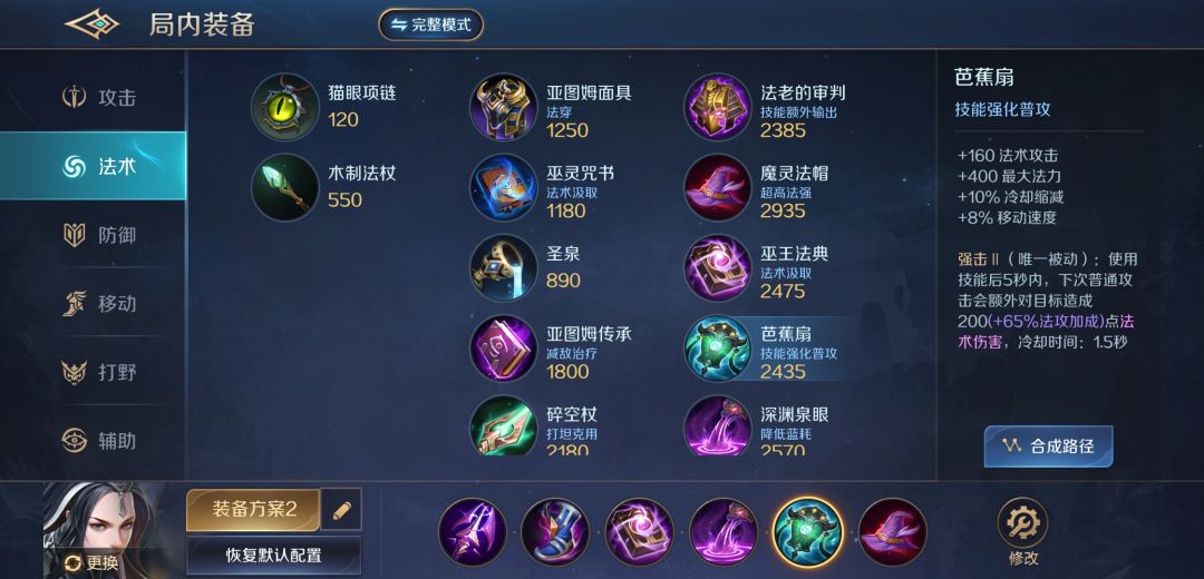 这套装备的核心是40%冷却缩减和法力源泉。吕洞宾非常缺蓝,法力源泉配合被动可以让吕洞宾时刻拥有连续位移的能力!其他装备则提高了法术攻击力和装备特效(提高爆发)。