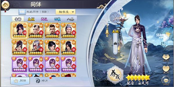 同伴玩法有:养成、侠岚评论、同伴碎片合成、侠岚领悟、装备元神等。