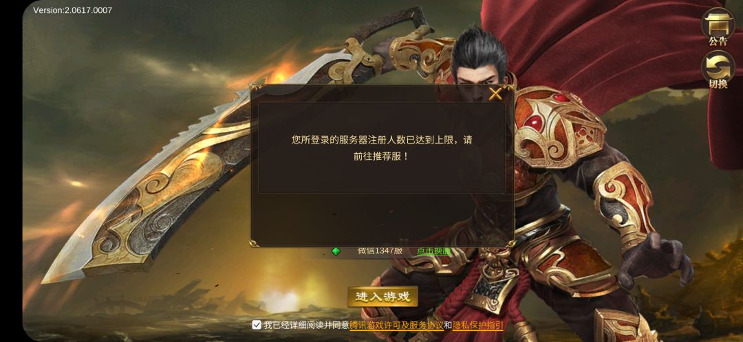 进入服务器发生了一个奇葩的事情!服务器满人是什么鬼?1347个绿色服务器还满人?然后一个一个服务器的试,试了1000多个结果同时还试了手Q区都是一样全部都是满人!这是什么鬼操作?一个服务器难道才100个人?难道是因为我不是心悦会员所以不给我进!太令人失望了!