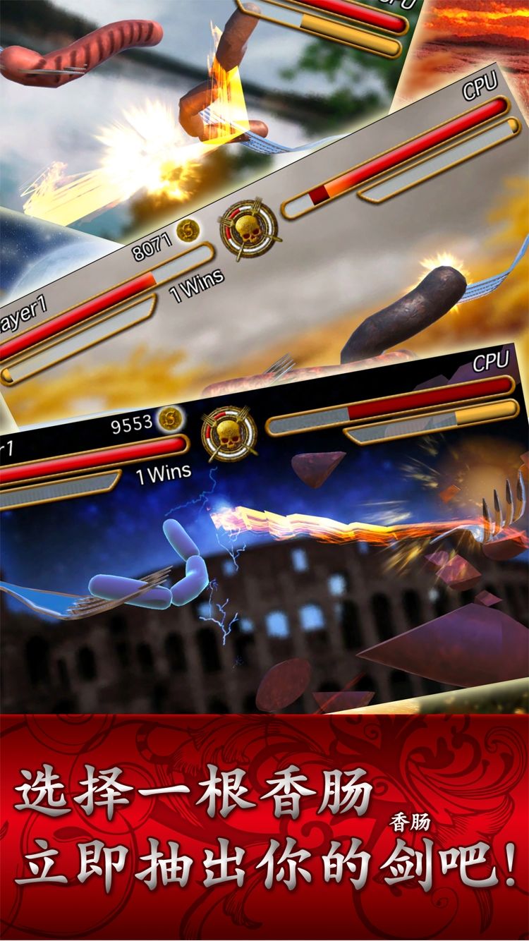 4.《香肠传奇》一款很邪恶的格斗对战游戏!是一款很久以前的游戏了!能活到现在!完全是因为有很多博主都搞过这个游戏!满屏幕在开车!一对一格斗类对战游戏!很简单拿起叉子,使出最大力气,找准角度,来一发(开冲)就完事了!