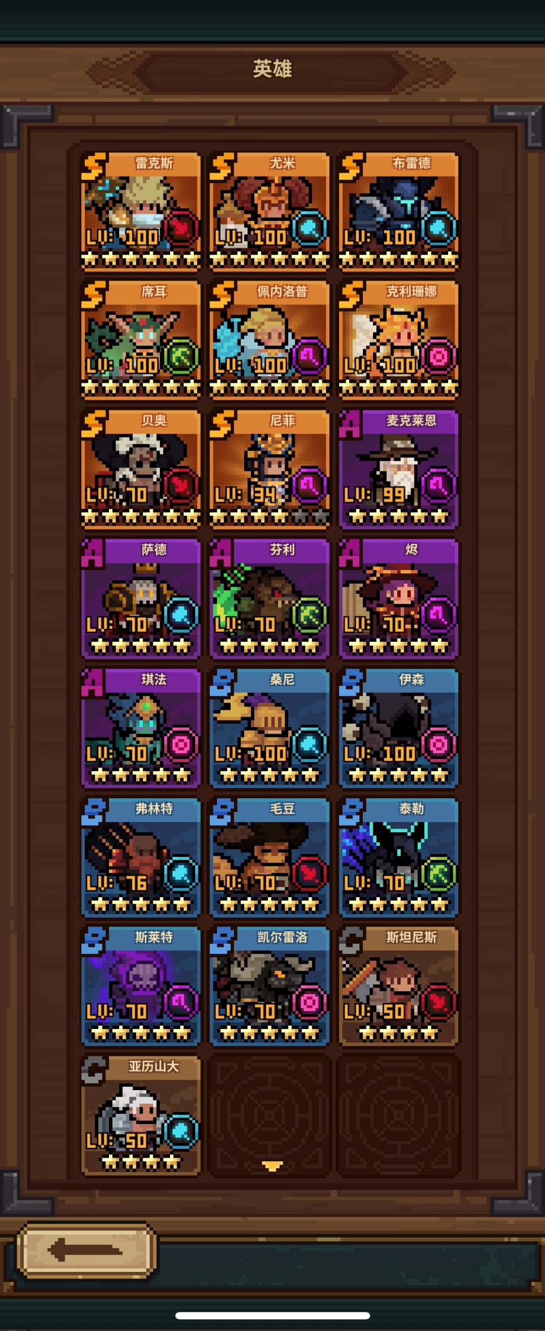3.英雄:相信大家加群或者论坛里许多攻略里都获取了一定的了解,这里我就直接放结果,本人使用后的强度排名。S为版本必练,A为可堪大用,B练了不亏过本好手,C有闲资源可以练练,D不建议资源投入,E就是版本废物(贝奥待定)。