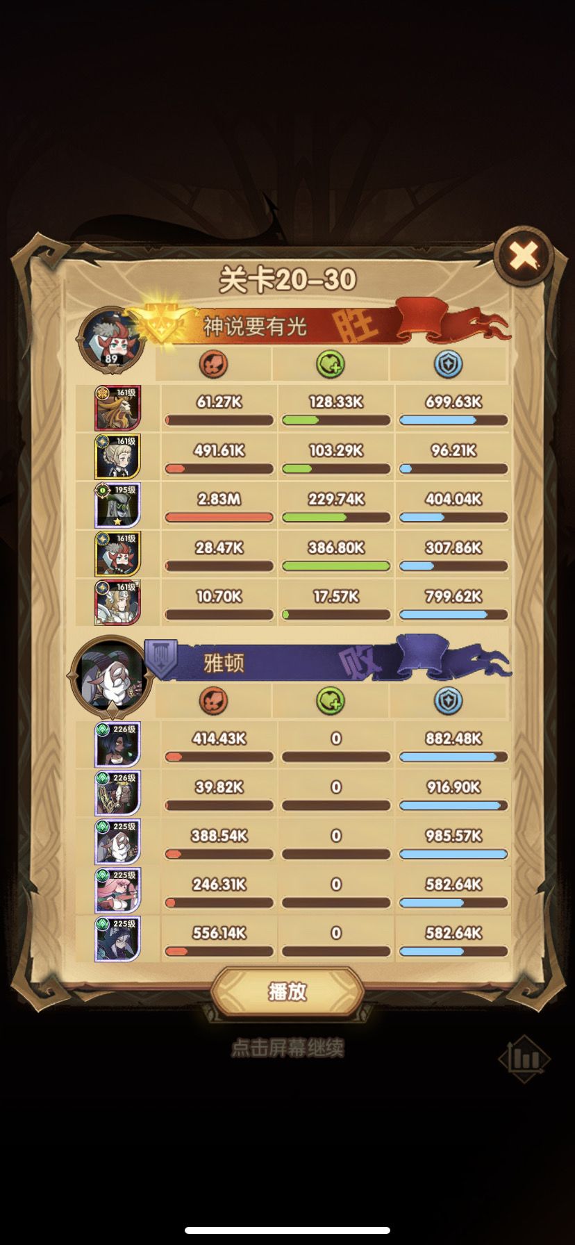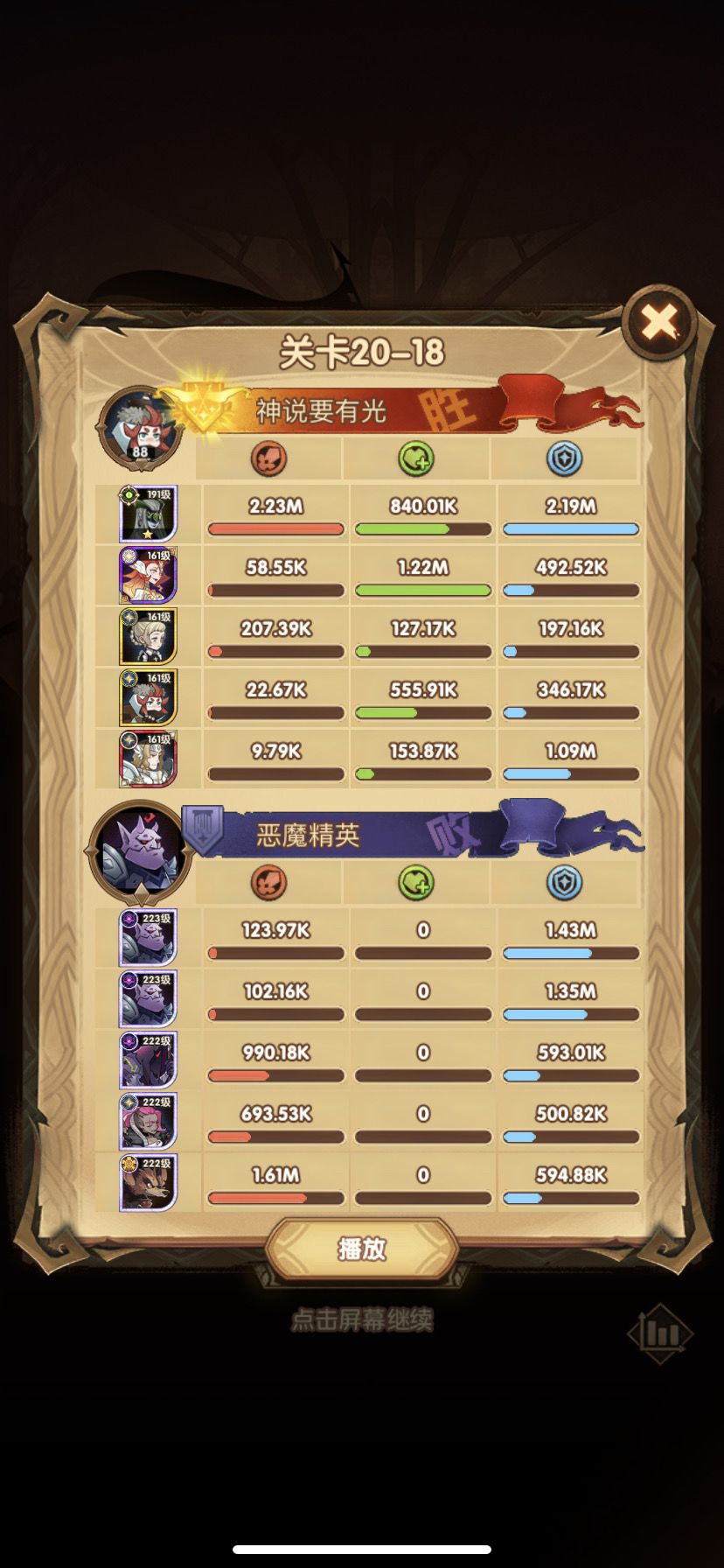 这关我从光盾169级打到光盾178级,终于过了。过关顺序是光盾开大,女妖大,女仆或者商人差不多时间大,最后剩女妖或者女妖女仆打女妖,过关。