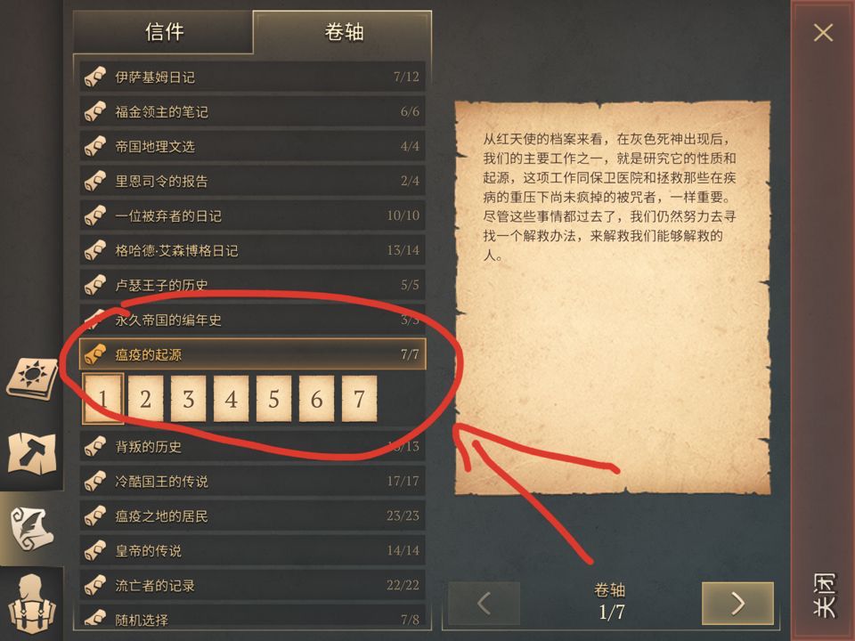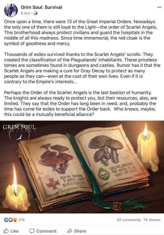 得益于《红天使的卷轴》,成千上万的流亡者幸存了下来,卷轴将瘟疫之地居民的一一分类。而这些无价的卷轴有时可以在地下城和城堡中找到。有传言说,红天使正在研制一种治疗灰色死神(由瘟疫之神在瘟疫之地引发的一种疾病)的药物,以保护尽可能多的人——甚至不惜牺牲自己的生命。即使这违背了帝国的利益…