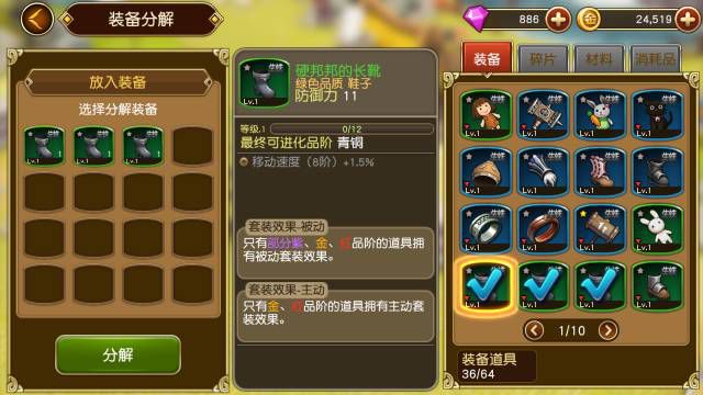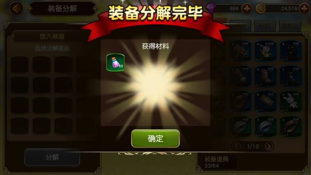 多余的装备可以拿来分解得到精灵粉末,精灵粉末又是升级的材料。