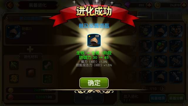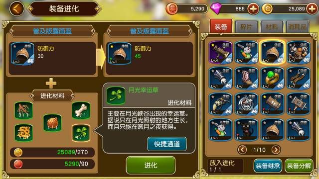 装备进化所需素材比较多,并且每进化一级需要的素材也会跟着改变,不同的装备进化的材料也不同,这就需要勇士们多多打副本采集素材。装备升级和进化两虽然都是提高攻击和防御,但是进化可以激活新属性,每样装备都有属于自己的属性就算是同种装备属性也不一定相同。勇士们可以根据自己的能力选择适合的属性装备