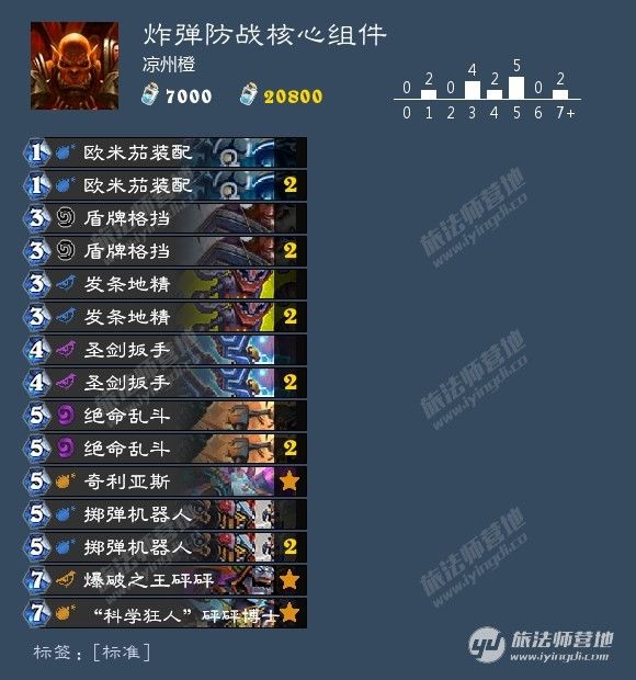 这套牌我微调了很多次,在思路上一直坚持走防战路线,升级绿皮雷象爆盐这种牌我没带过,因为卡位实在是太紧张了。这样的话,加入盾格和乱斗之后,炸弹防战的核心成分已经出现了,我们后面围绕这个继续进行构筑:
