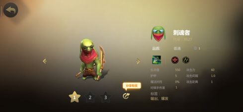 第一枚棋子是哥布林族最帅气的潜行者——刺魂者。做为一金币棋子,刺魂者的攻击力非常高,甚至不输许多的二金币棋子。同时他的技能可以造成300点魔法伤害,这在早期也是比较无解的存在。如果希望转型六潜行者阵容,刺魂者也是值得培养的棋子。