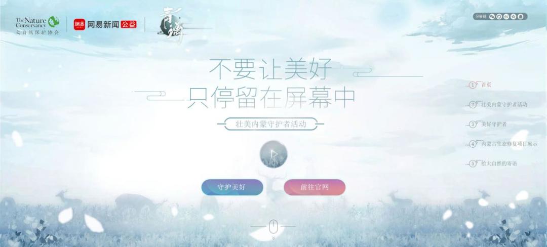 天苍苍野茫茫,风吹草低见牛羊……大漠草原的秀美风光在诗句中传唱了千年,在《青璃》游戏中,一剑一马,迎着落日的余晖,携美驰骋在广漠的草原之上。然而现实中的内蒙古草原却时刻饱受着荒漠化的严重威胁。目前,由《青璃》、网易公益、大自然保护协会共同推出的“大自然守护者计划”壮美内蒙守护者活动H5已正式上线,玩家只需轻触指尖扫码参与,《青璃》将带着你跨越时间与空间的距离,前往大自然保护协会的“内蒙古生态修复项目”,近距离体验不让美好只停留在屏幕中,为守护绿水青山奉献一份力量的真情实感。