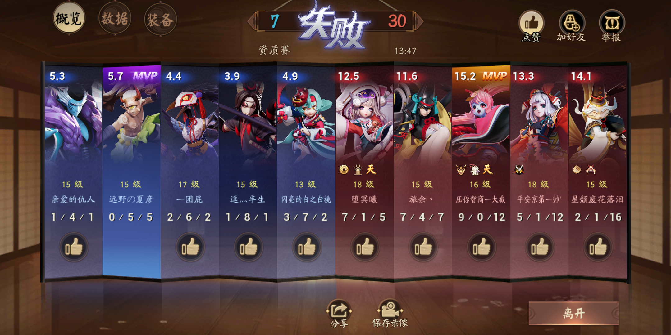 输的那一把是小黑选式神的时候挂机了,导致我们这边没射手,两法。金鱼姬对线期和被动出来的百目鬼对刚。